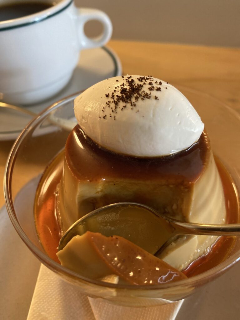 コーヒーに合わせていただいたのが、平日のみ提供される「ロースターのプリン」¥550。 上にはたっぷりの生クリームがのっていて、見た目も可愛らしく、口に入れると濃厚でとろける美味しさ。 コーヒーとの相性も抜群で、特別なカフェタイムを演出してくれます。 これは絶対に行きたいと思える一品でした。