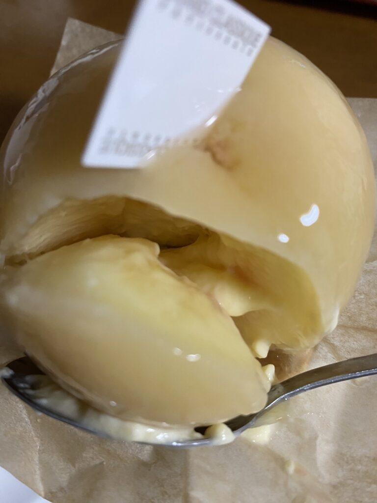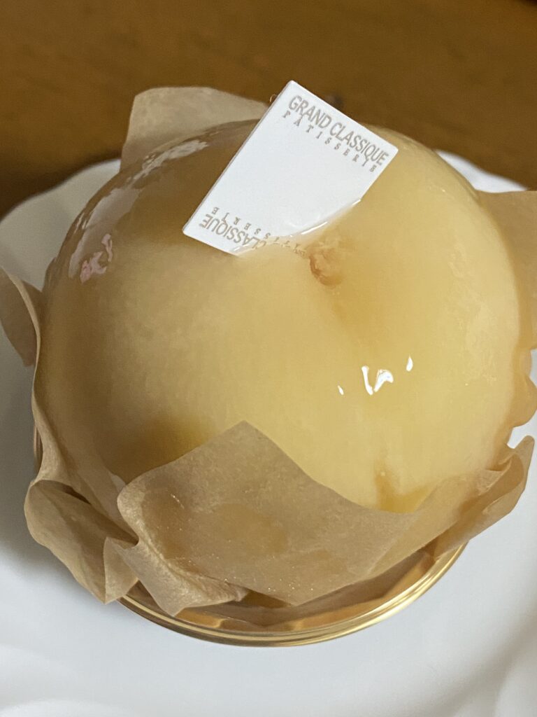 桃を丸ごと使ったケーキで、中にはカスタードやクリームがたっぷり。みずみずしい桃と濃厚なクリームのバランスが最高でした。