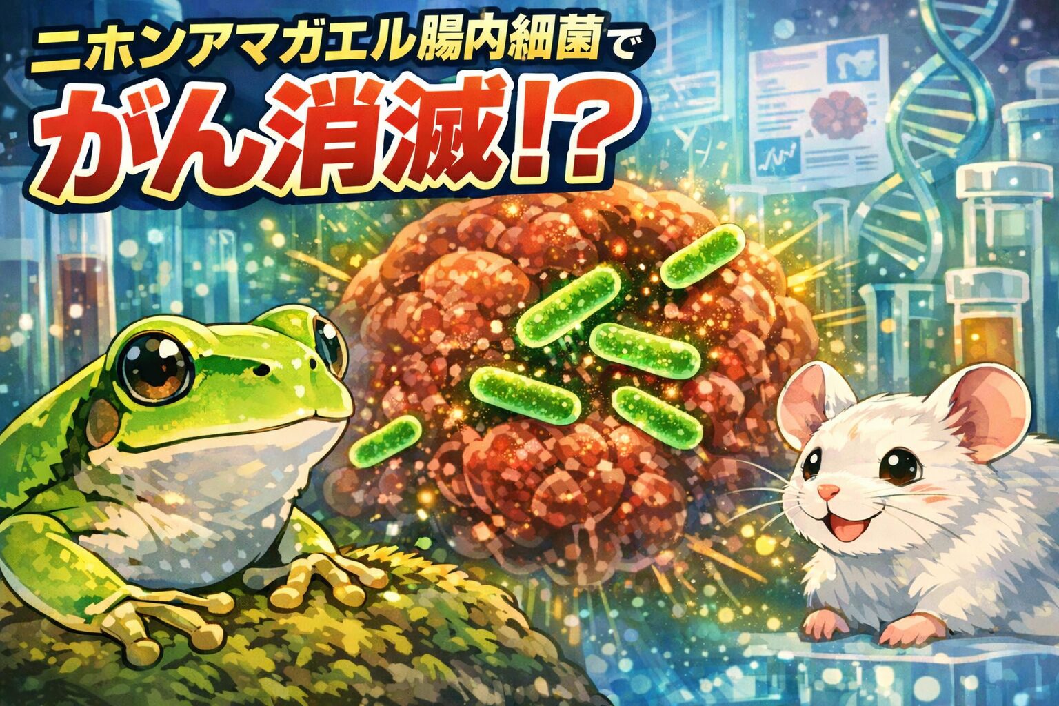 2025年12月、ニホンアマガエルの腸内細菌から発見された細菌が、マウス実験で大腸がんを100%消失させたという研究成果が報告され、注目を集めています。