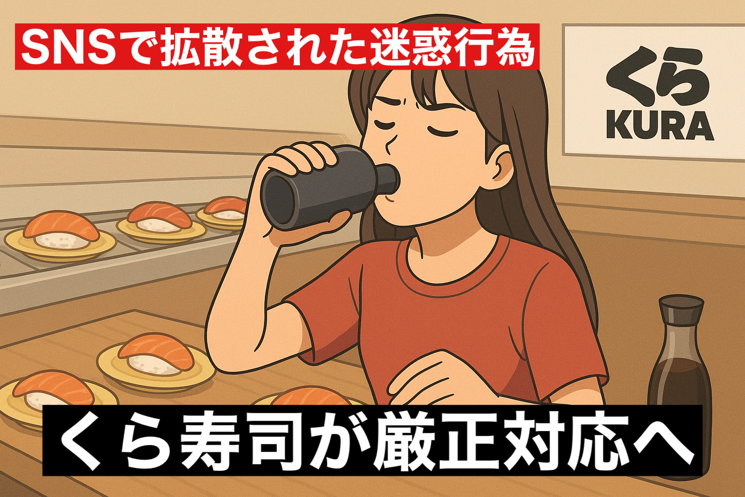 回転寿司チェーン大手「くら寿司」の山形南館店(山形市)で、来店客がレーン上のすしを素手で触ったり、しょうゆ差しから直接飲むような迷惑行為を行い、その様子をSNSに投稿した動画が拡散しました。 くら寿司によると、店舗および実行者はすでに特定されており、地元警察と連携して厳正に対応を進めているとのことです。